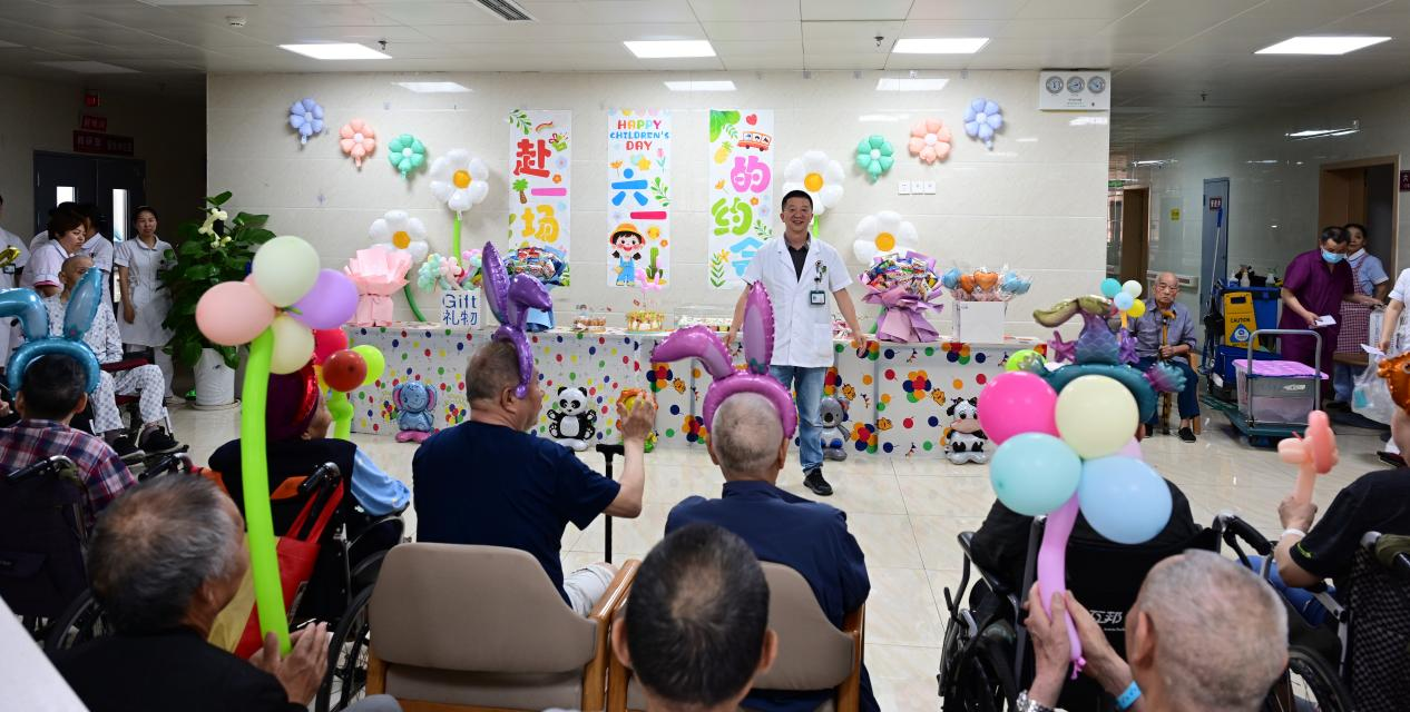 病房里一位老人盯着电视上六一儿童节的节目,嘴里嘟囔...