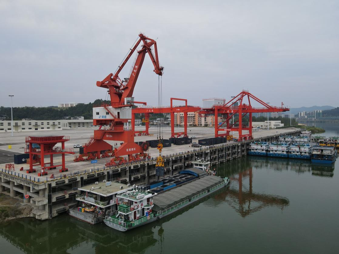 9月24日,嘉陵江上下行共10艘船舶运载着5000吨货物顺利...