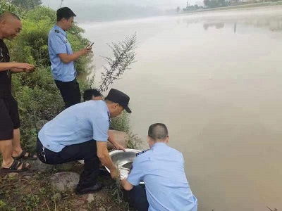 2022年7月22日9时许,雅安市荥经县公安局新添派出所接群众求助称:其在新添镇下坝村外河段内发现一条娃娃鱼,请求处理。民警接警后迅速抵达现场并及时联系县农业农村局,经过农业农村局确认,此娃娃鱼为野生娃娃鱼,是国家二级重点保护的水生野生动物,且重量在8斤左右,身体状况良好,符合野外放生条件。