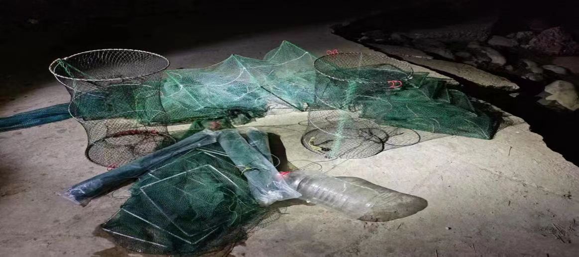 2022年7月19日晚,民警在日常巡逻管控中发现经河河道内有人非法置放了多条地笼网,民警顺着河道将放置在河底长达十多米的地笼网进行清理,网眼细密。随后民警将地笼内小鱼虾放生并对地笼网进行清理、收缴,同时通过走访调查的方式对放置地笼的违法嫌疑人进行全力追查。目前,该案件正在进一步侦办之中。(罗阳 左豪)