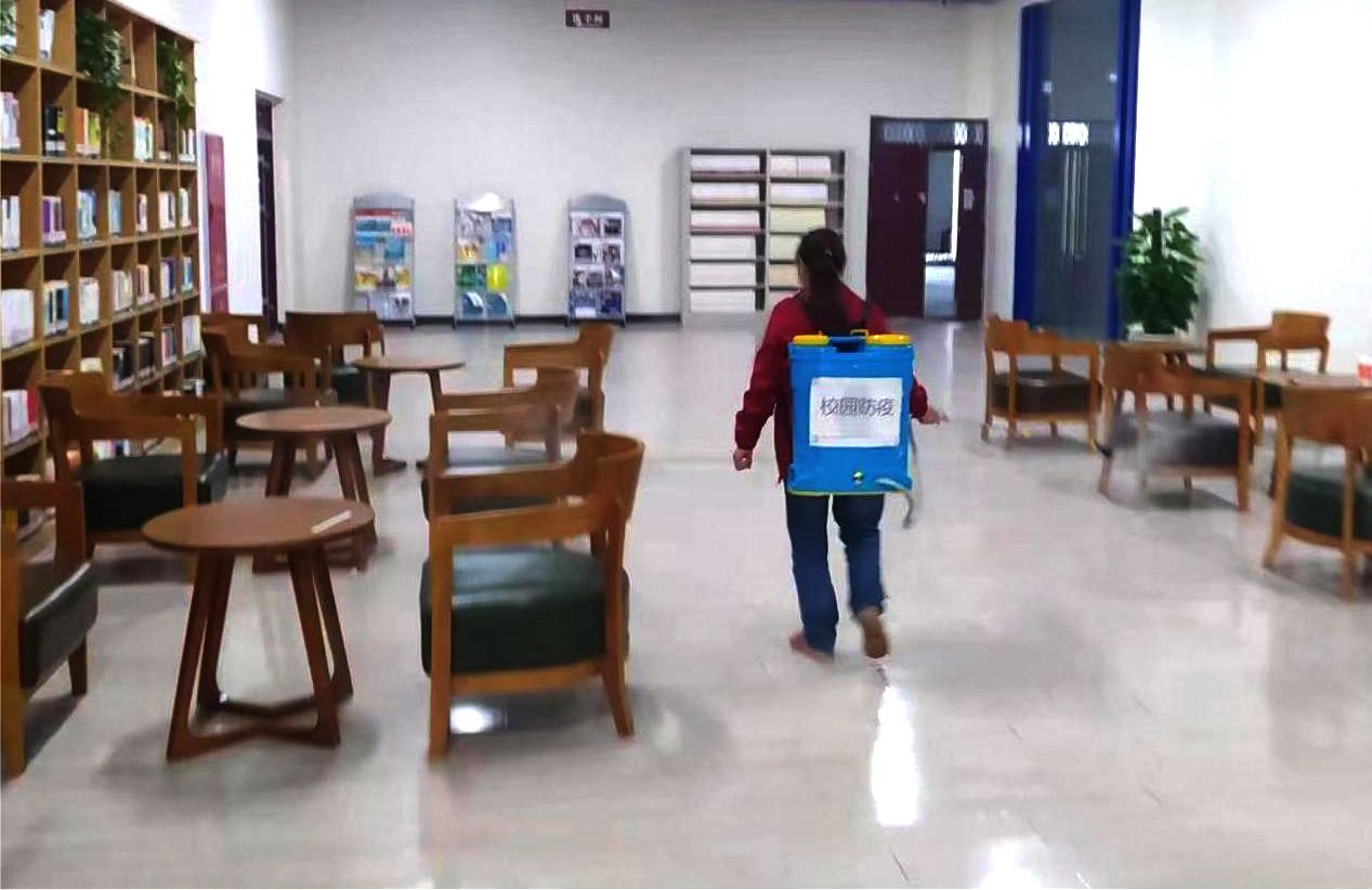 认真做好校园环境消杀工作,校园内公共区域的卫生清洁、消毒消杀做到了全时段、全方位、全覆盖,学校隔离房间做到了随用随消,用完即消。在校医的培训和指导下,消杀人员负重15公斤,日均消杀面积近30万平米,为校园疫情防护筑牢安全屏障。