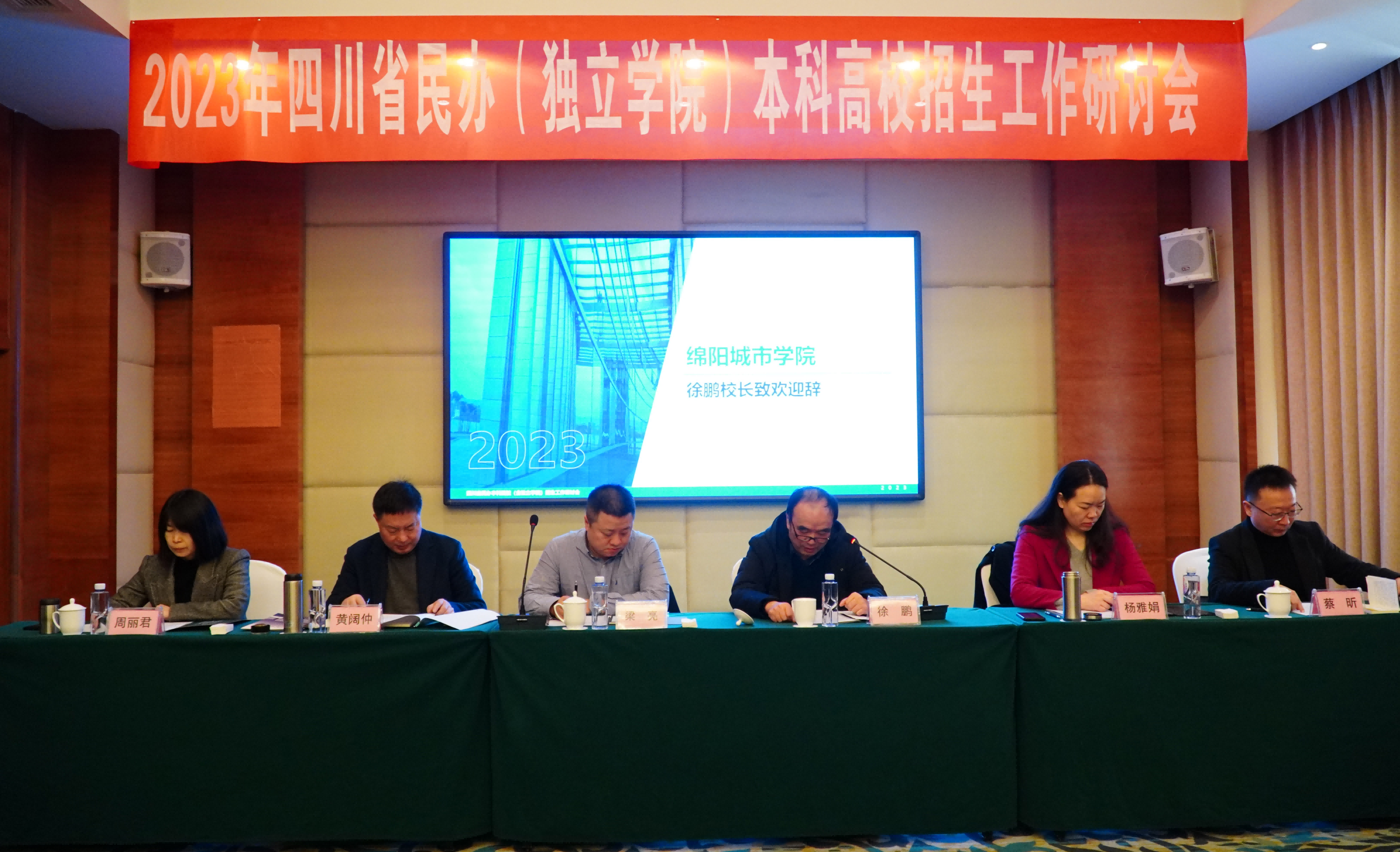 2月25日,由绵阳城市学院承办的2023年四川省民办(独立学院)本科高校招生工作研讨会议在安州区罗浮山绵州酒店召开。四川省教育厅高校学生处副处长梁亮,四川省教育考试院考试指导中心副主任杨雅娟,绵阳市委教育工委委员、市教育考试院院长黄阔仲和全省18所民办高校代表共50余人参加会议。大会由四川大学锦江学院招就处处长蔡昕主持。西南科技大学、绵阳师范学院、绵阳职业技术学院等在绵公立高校招生部门主要领导应邀参加会议。