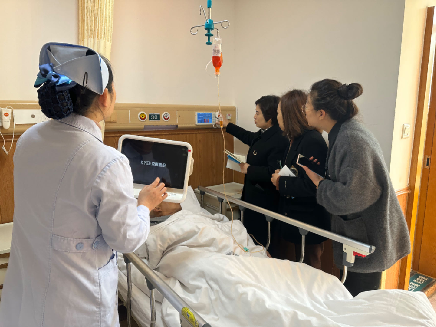 随后,赵丽主任带领杨娟副院长一行前往护理部、临床技能培训中心、健康管理中心以及相关临床科室参观走访,并就医院护理质量与安全管理、护理科研与教学管理、护理信息化与智慧化病房建设以及等级医院创建等方面情况进行了深入交流。