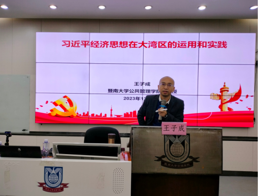 暨南大学公共管理学院行政管理系主任、教授王子成以“习近平经济思想在大湾区的运用和实践”为主题作专题报告。