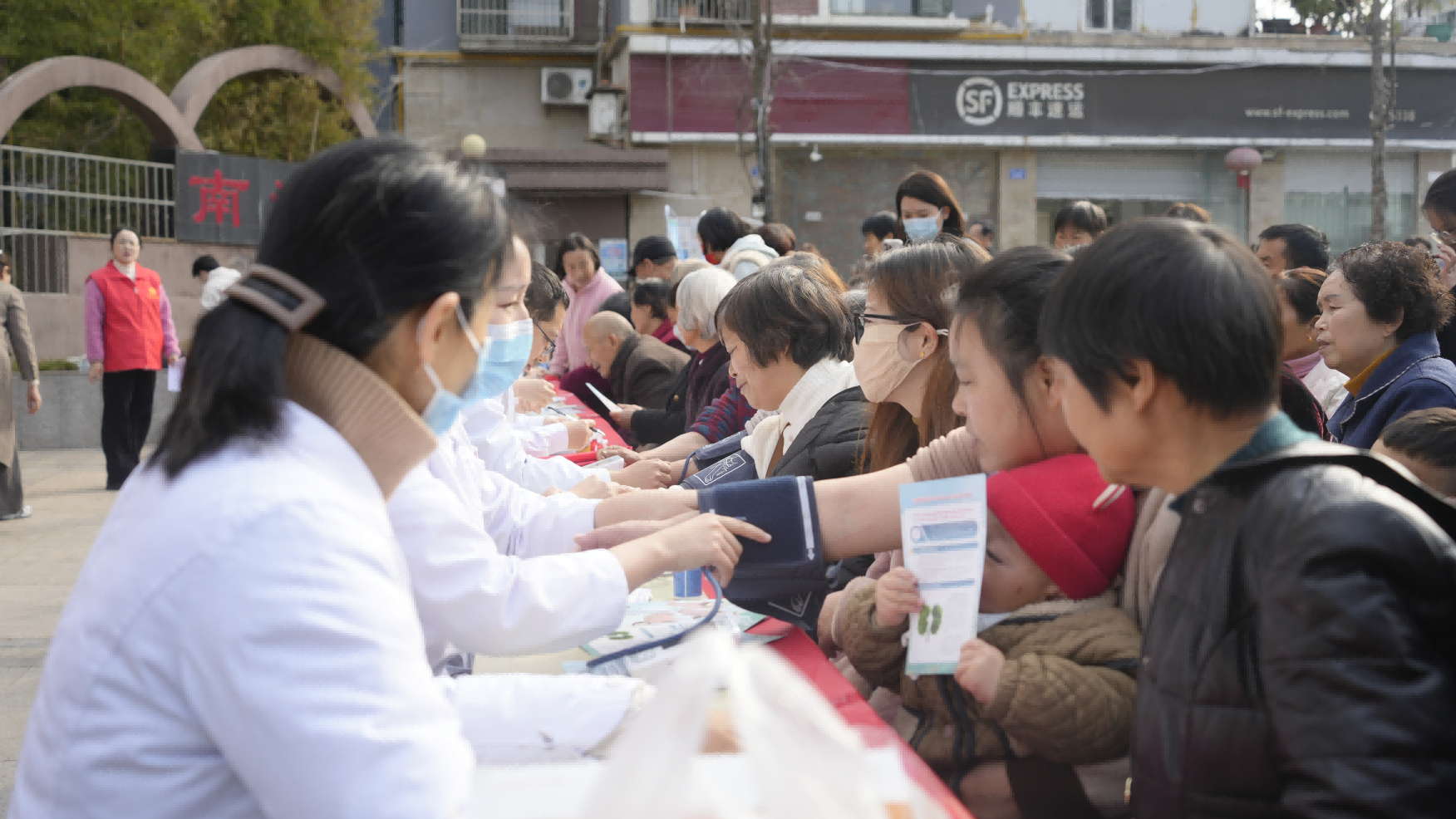 活动当天,肾病内科与眼科分别组织专家团队,携带检查设备到场进行义诊。一大早,义诊的广场上就排满了人,大家有序寻找医护人员答疑解惑,检查问诊。