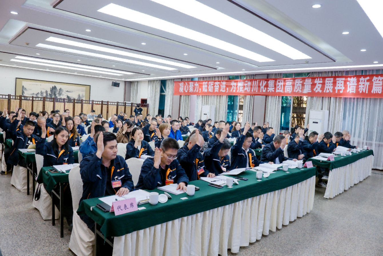 川化集团公司领导、职能部门、子分公司主要负责人及职工代表约100人参加会议。(杨翠莉、李琪瑶、李家林 文/图)