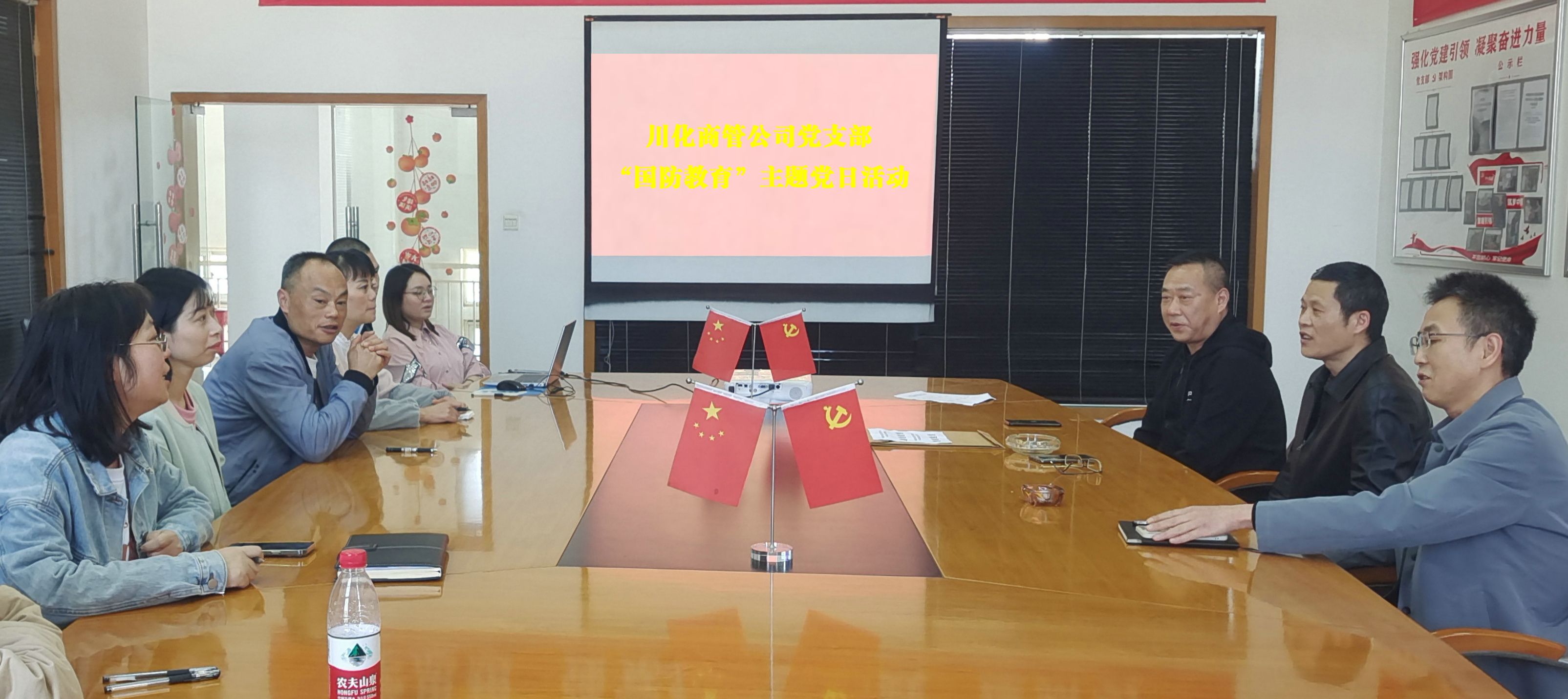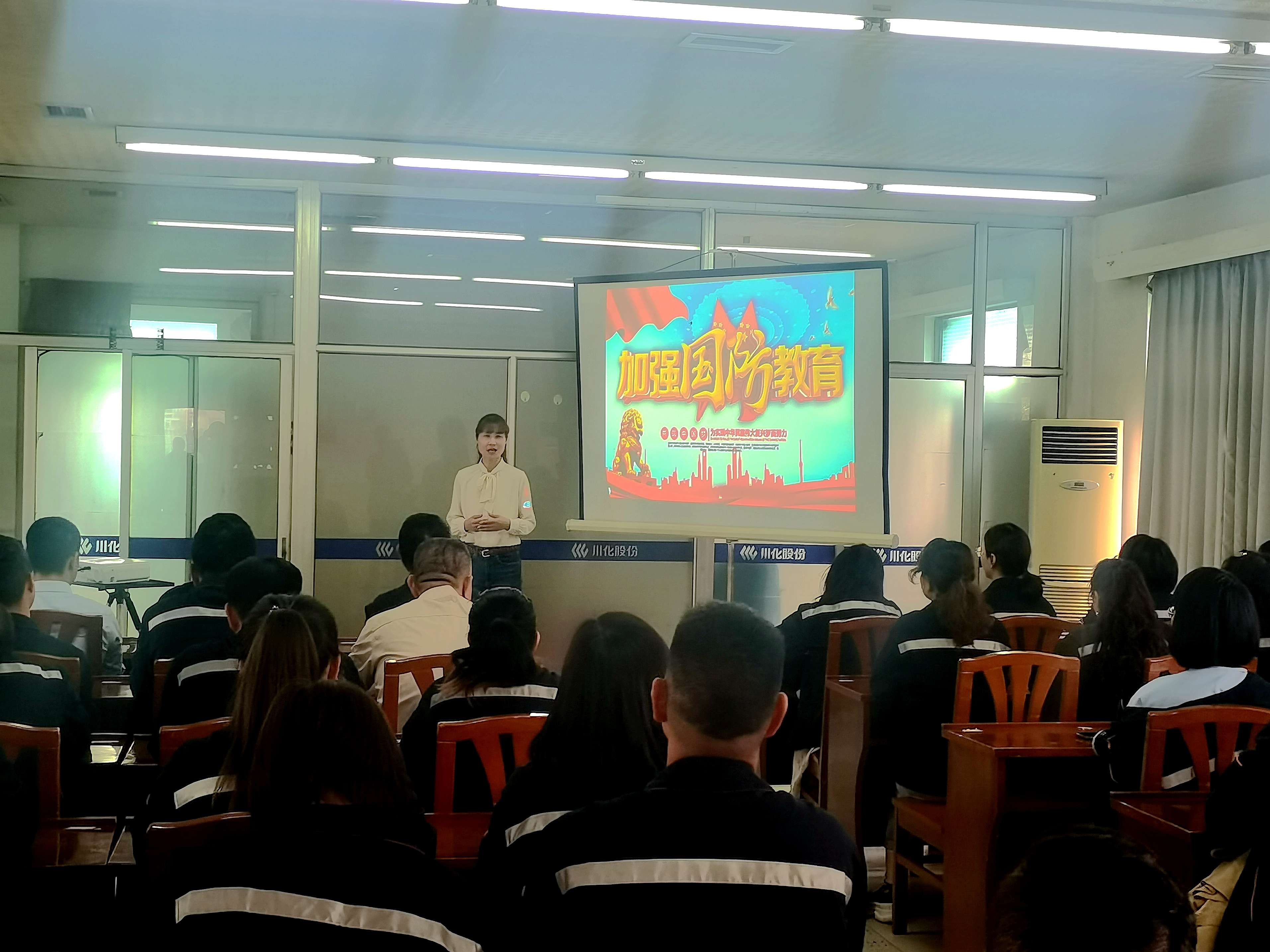 按照省国资委关于开展“爱我国防”教育主题活动的相关工作要求,川化集团本部组织开展了学习《国防教育法》《兵役法》等读书分享活动,川化集团保卫部(武装部)就相关条款进行学习宣贯,并结合当前国际形势进行了深入地解读。宣讲会上,组织干部职工观看了爱国主义影片《甲午海战》,开展了《听党指挥,能打胜仗》的国防教育现场宣讲;川化集团所属青白江分公司、川化商管公司、川化禾浦公司、川化宾馆、催化公司、能投化学公司、川化新材料等子分公司纷纷通过主题党日、读书分享等形式进行国防教育宣讲活动。同时利用公司宣传栏、LED显示屏等张贴国防宣传海报,滚动播放国防宣传标语。各子分公司纷纷组织开展《爱党爱国,强我国防,宏伟华夏五千年》《爱我国防》《热血铸军魂》等现场宣讲活动;川化新材料公司利用班前班后会组织一线职工学习国防教育的相关宣讲视频。据统计,川化集团共100余名干部职工参加了国防教育主题活动宣讲活动。