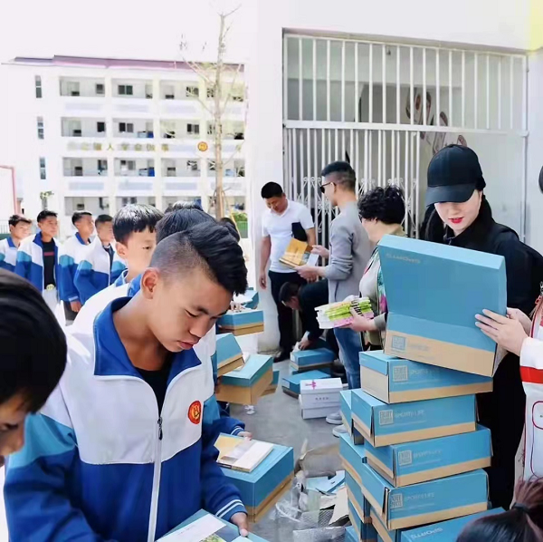 杨玉娇右同公益爱心朋友一起在凉山州喜德县某学校向学生发放爱心物资