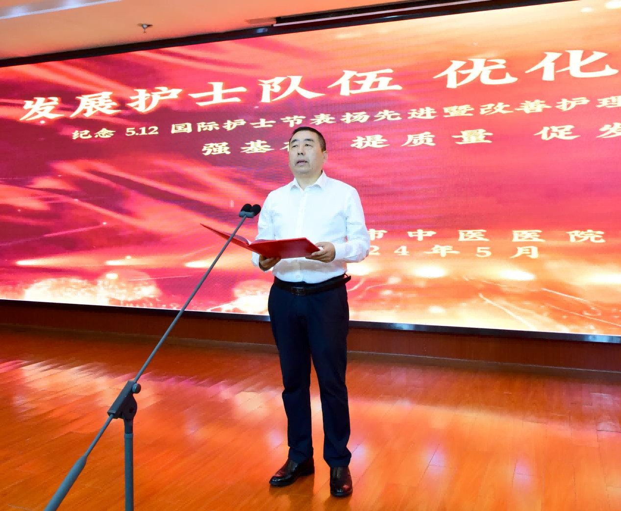 党委书记岳先远代表院党委向长期奋战在一线的全院护理工作人员致以节日的祝福。他说到,护理学科在这一年来取得了显著成就,充分展示了白衣天使形象,既有人文的温度,也有专业的深度,赢得了百姓的信赖和赞誉,为医院的发展注入了护理的智慧与力量。
