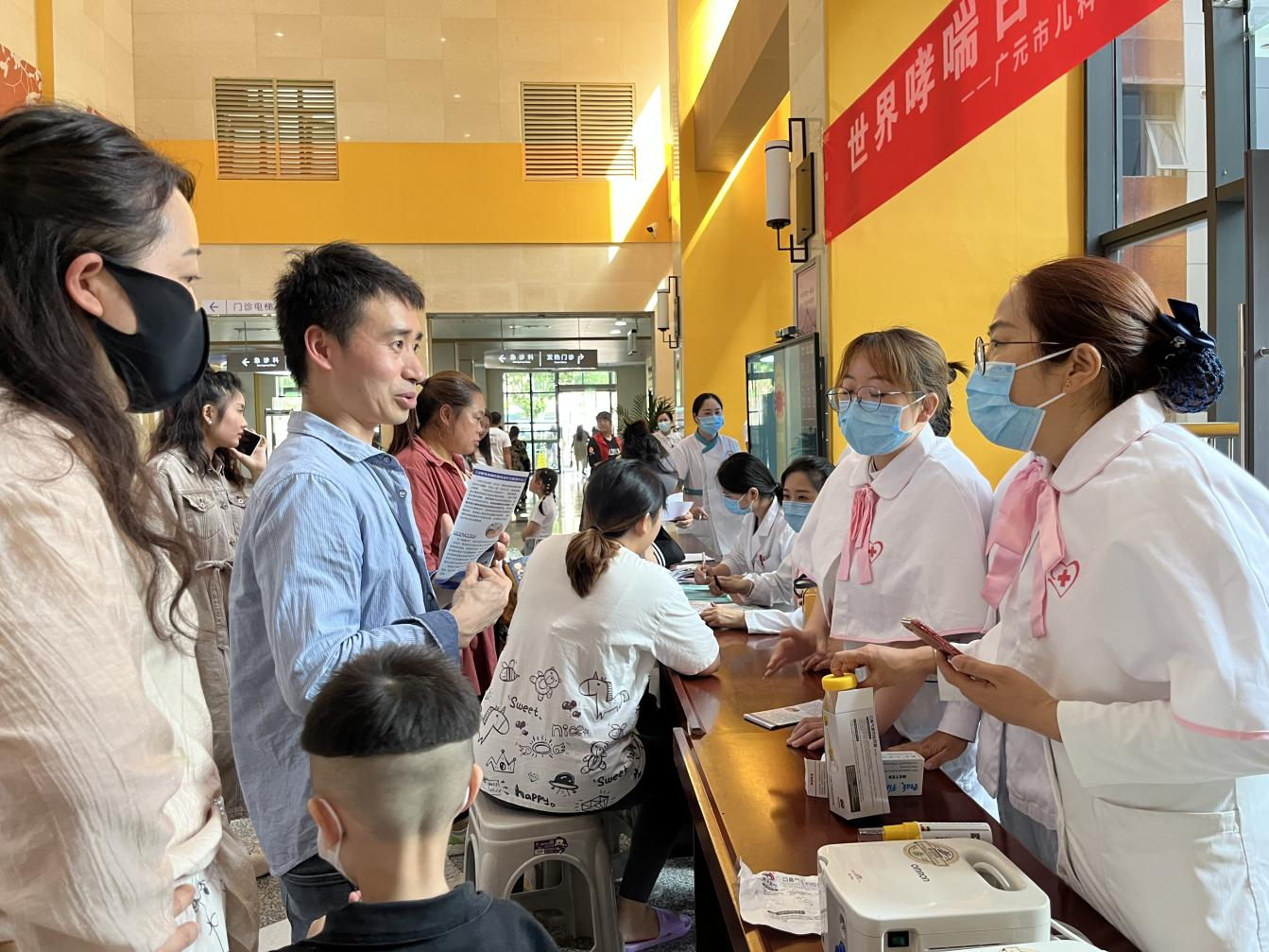 活动现场,儿二科医护人员与前来咨询、就诊的患儿及家属面对面交流,耐心细致地答疑解惑,详细讲解哮喘病的成因、症状、预防和治疗方法等相关知识,为哮喘患儿提供专业的过敏哮喘诊疗指导和建议。