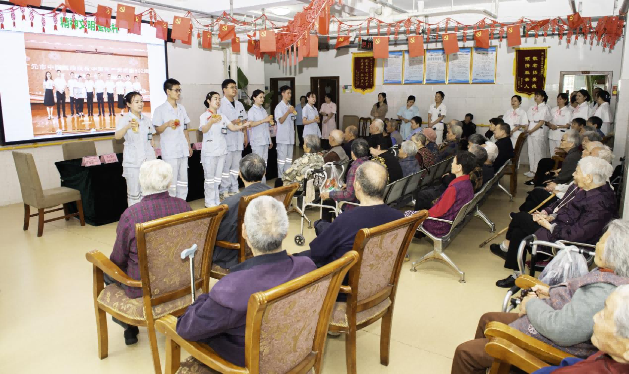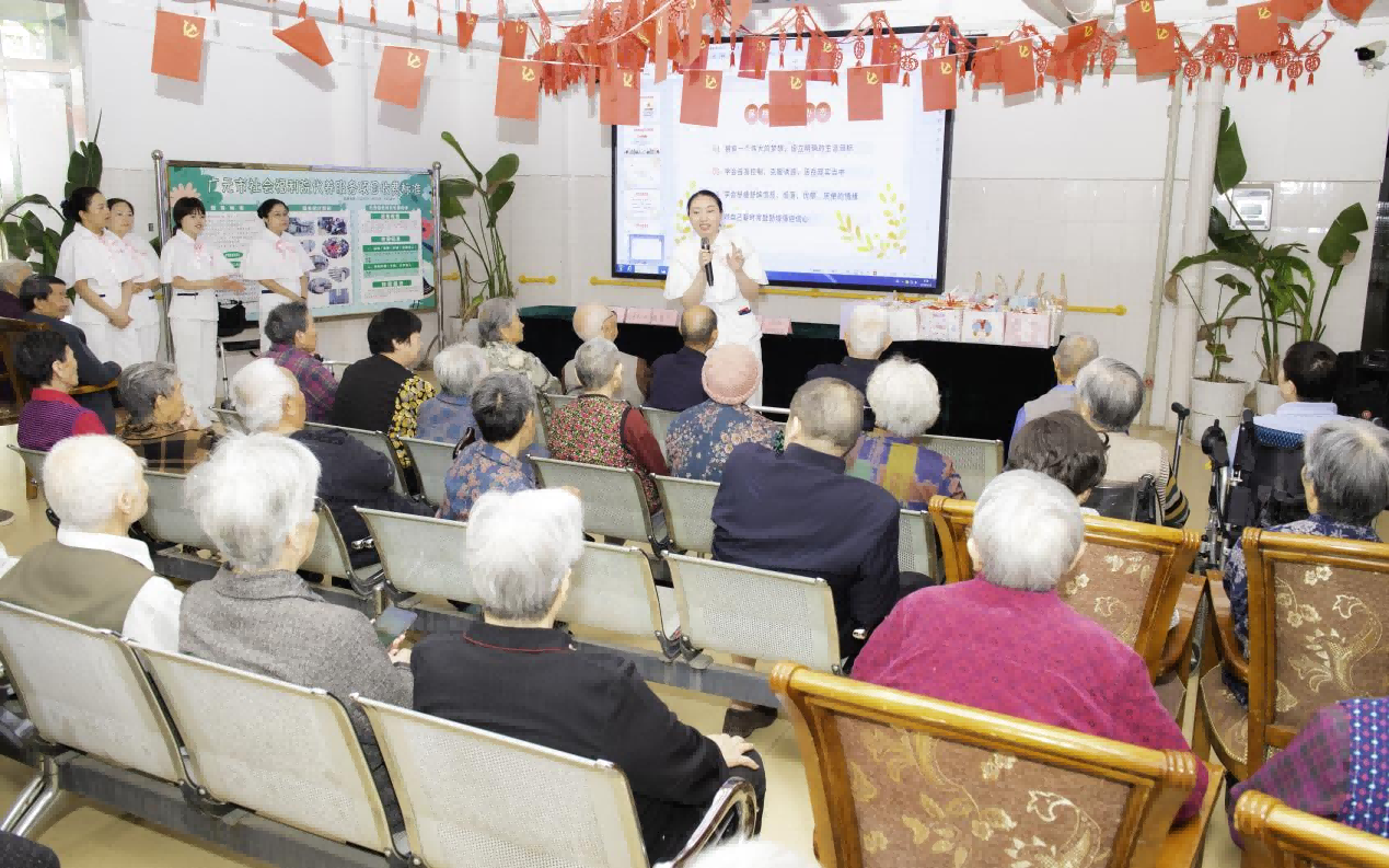 呼吸与危重症医学科护士长刘瑛带领老人做肺康复操,吸气时振臂,呼气时还原,在愉快的环境中畅享呼吸;慢性病门诊护士梁清秀现场为老人进行中医技术刮痧和杵针治疗;针灸科团队表演了相声《复不扶》,聚焦患者多元化的护理服务需求,诙谐地表现了康复护理的新进展。