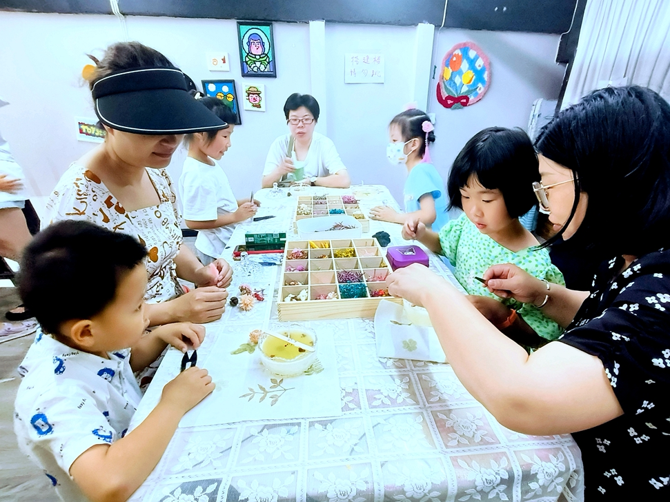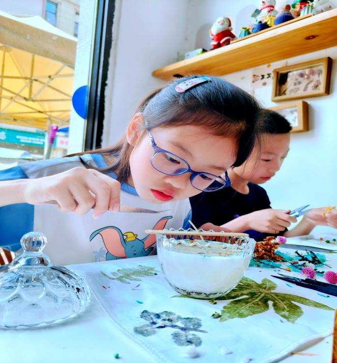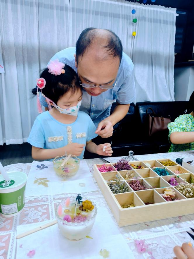 活动现场,老师为大家讲解了手工香薰蜡烛的制作方法,展示了非常漂亮的手工香薰蜡烛,父母和孩子满脸都充满了期待。在手工制作香薰蜡烛环节,老师为大家分发了水晶蜡碗、蜡芯、装饰物等一系列原材料,家长和孩子们兴致勃勃地开始制作香薰蜡烛。选花、修剪、定形、点缀、插花……室内香气清幽,令人身心放松,现场一片欢声笑语。每组家庭都在这些环节中找到了乐趣所在,他们窃窃私语,互相商量,认真用爱调制出独属于自己的香薰蜡烛。一片片花瓣、树叶,都成为大家勾勒美景的神奇元素。一个个精美的香薰蜡烛在家长和孩子们的巧手下出炉了。每一个作品都与众不同、独一无二。捧着亲手制作的香薰蜡烛,大人和孩子们的脸上都洋溢着灿烂的笑容。