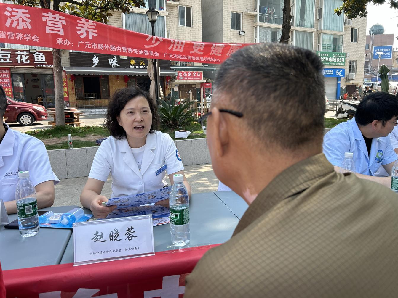 在广元市利州广场、医院,通过LED视频播放、知识宣讲、悬挂横幅、发放宣传手册等多种形式,全方位、多角度向群众介绍如何健康饮食等相关知识,普及营养的重要性,引导群众树立“多吃蔬果、奶类、全谷、大豆,少盐少油”的健康饮食理念。