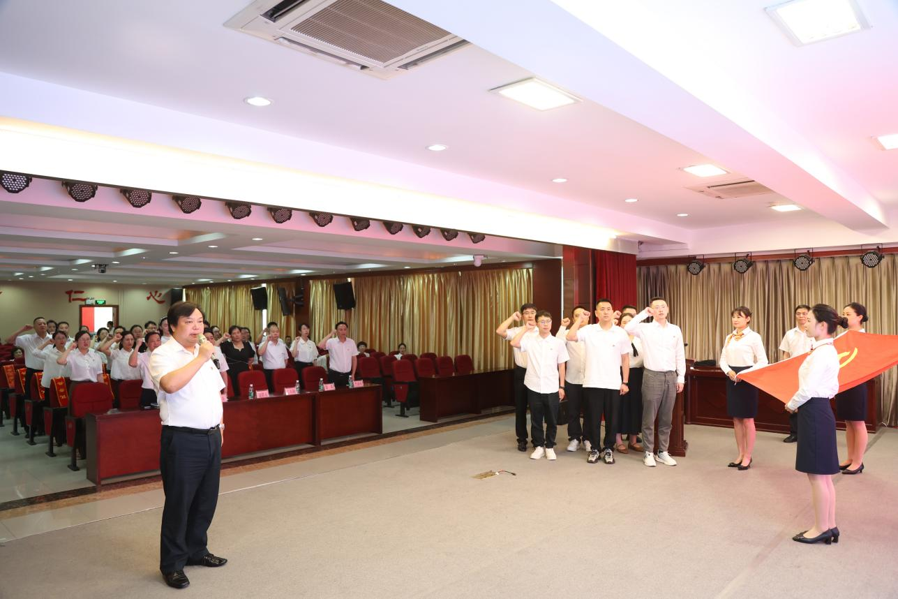 “我志愿加入中国共产党,拥护党的纲领,遵守党的章程……”在党委书记边恩元的带领下,2022年至2024年新发展的党员面向党旗庄严宣誓。全体党员高举右手、坚定目光,以铿锵有力的声音再次重温入党誓词、重忆入党初心。