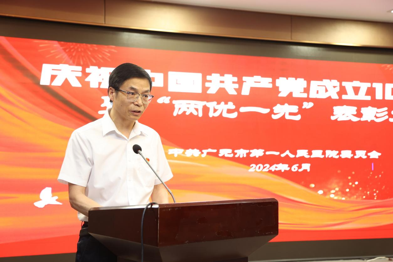 会上,市第一人民医院党委副书记、院长王天勋宣读了《中共广元市第一人民医院委员会关于表彰优秀共产党员、优秀党务工作者和先进基层党组织的决定》,希望各级党组织和广大党员干部以榜样为镜、向榜样看齐,坚定信念、廉洁自律、实干奋进、善作善成,为捍卫人民群众健康奋斗终生。