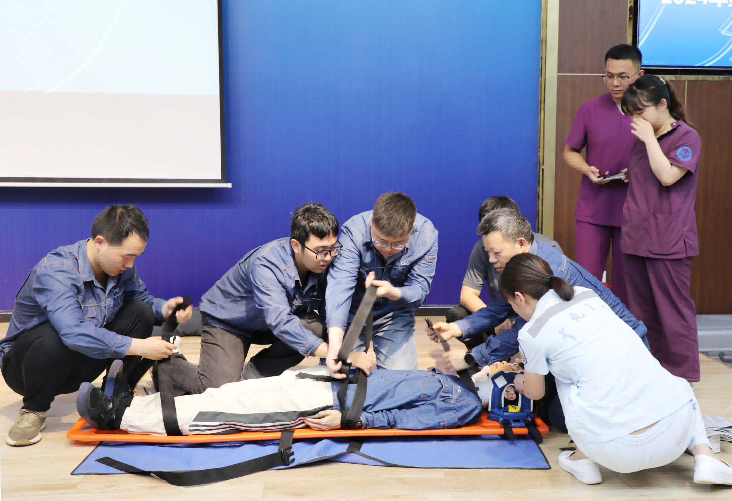 在急救演练环节更是亮点纷呈,基于专业医疗培训模式,结合学员的技能水平,理论培训结束后,立即开展实操演练。做到一科一练,边说边练,你说我练,人人会做,人人过关。活动共持续8小时,惠及一线电力员工50余人,深受大家的一致好评。