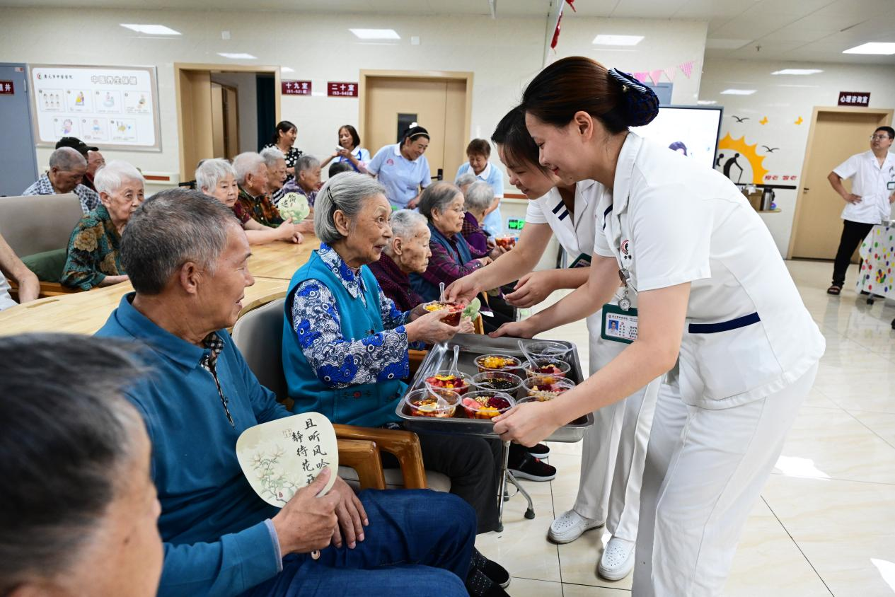 照护区定期为老人开展活动,为老年人提供了丰富多彩的休闲方式。这些活动如同夏日里的一缕清风,吹散了炎热,带来了欢笑与温情,让老人们的夏日不再单调,而是充满了色彩与活力。(广元市中医院)
