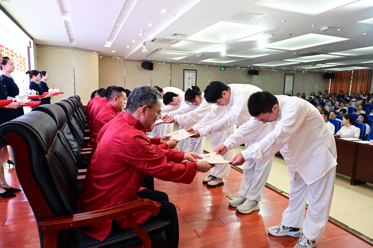 在第40个教师节来临之际,为激励师生教学热情,增强师生的荣誉感、责任感和使命感,9月10日下午,广元市中医院举行“2024学年度中医规培工作表扬大会暨中医规培师承教育拜师仪式”。医院党委副书记、院长周骥等在家院领导及优秀教师代表等200余人参加会议,党委委员、副院长陈兵主持会议。