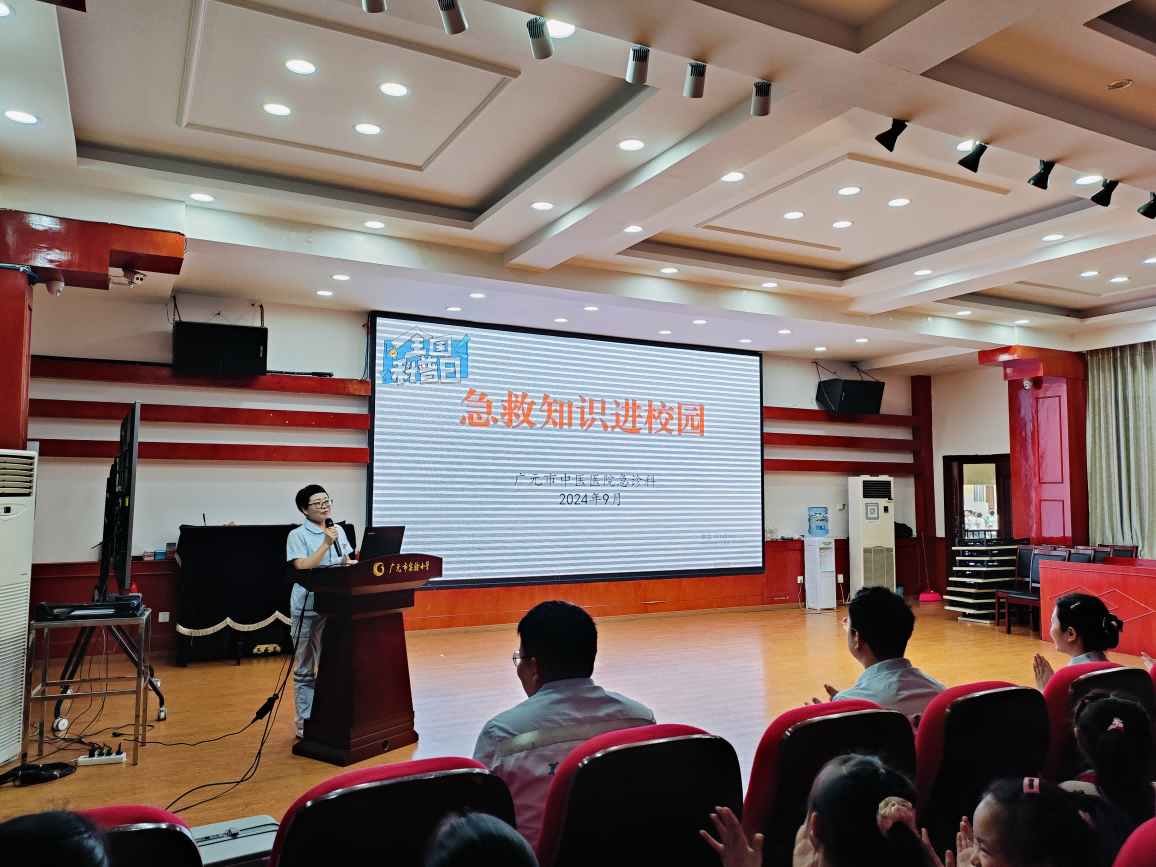 急救知识:急诊科主管护师侯丽平以《急救科普进校园》为题,做专题讲座,介绍了关节扭伤、烫伤、中暑、鼻出血、噎食的急救处理方法,普及了120急救电话的拨打流程,重点示教了“剪刀、石头和布”的海姆立克急救法。