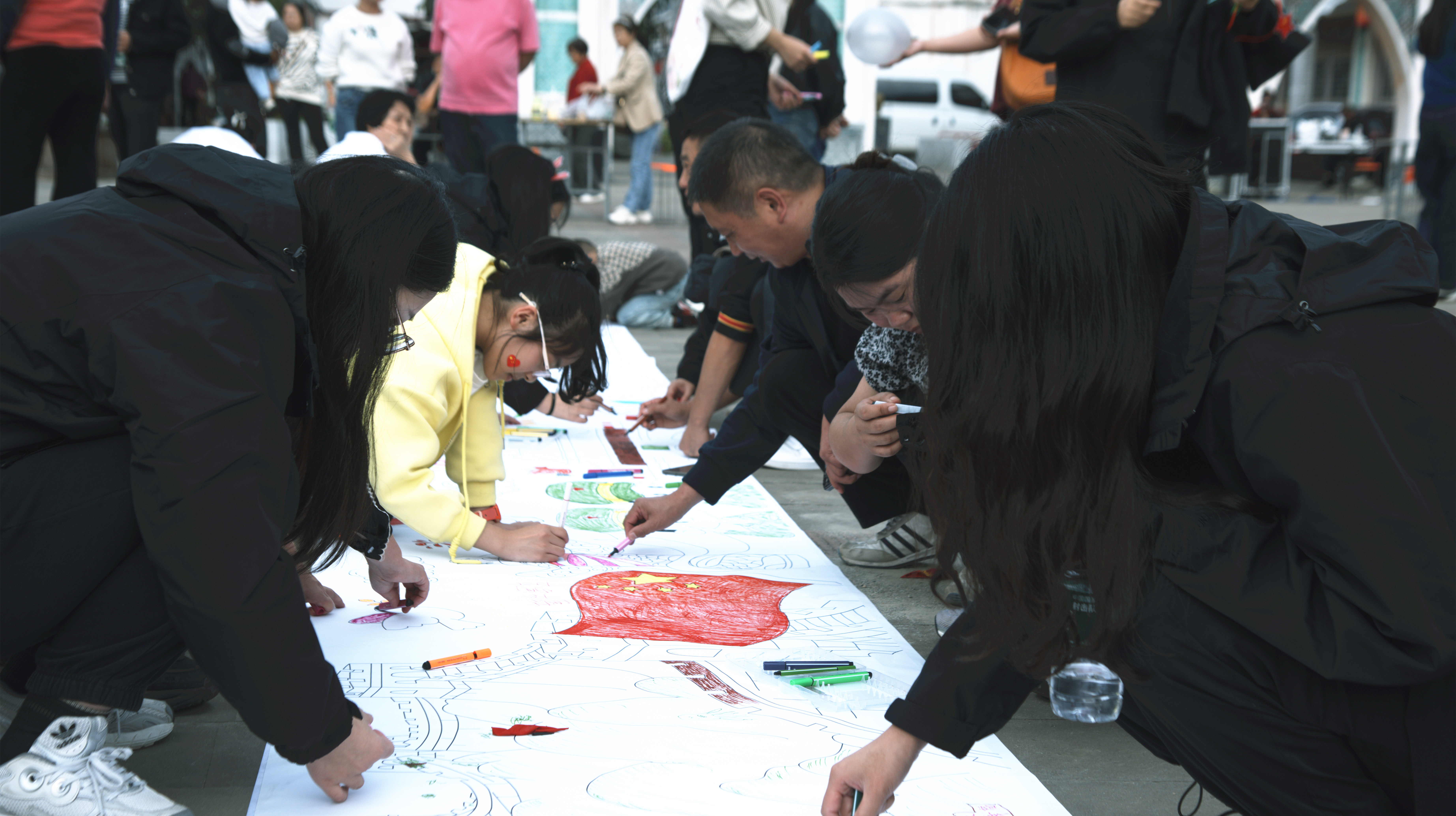 活动现场,气氛热烈而欢快。在星月广场上,两张5米长卷与两张10米长卷依次铺展,瞬间吸引了众多市民和游客的目光。大家纷纷拿起画笔,在长卷上自由挥洒,创作出一幅幅以祖国为主题的精美画作。这些画作有的描绘了祖国的壮丽山河,有的展现了人民的幸福生活,还有的则表达了对祖国的美好祝愿和深深祝福。