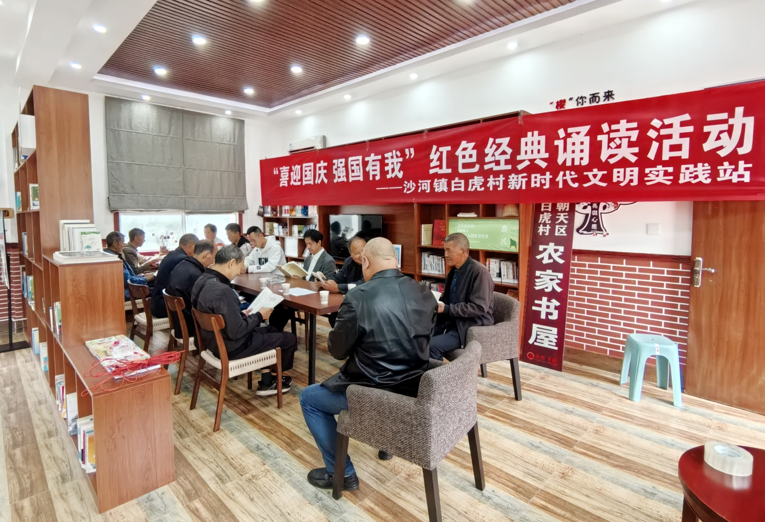 “不忘初心华夏梦,砥砺前行共奋进……”在白虎村农家书屋,群众干部围坐在一起,将满腔热情蕴含于一篇篇脍炙人口的经典作品之中,用优美的诗句,灵动的语言祝福祖国繁荣富强,国泰民安。
