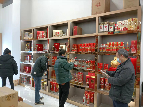 宜宾市市场监督管理局三江新区分局执法人员与五粮液集团公司打假办工作人员组成联合检查小组,由两名执法经验丰富的执法人员带队,对三江新区商场超市、专卖店、连锁店等酒类经营场所进行突击检查。重点检查经营门店店招、相关证照、酒类商品包装以及进购渠道等相关内容,严厉打击侵犯企业商标专用权及销售假冒伪劣商品等违法行为。检查小组成员严格按照《反不正当竞争法》《产品质量法》《商标法》等相关法律法规规定,分工协作、紧密配合,认真检查每一个环节,确保打击侵权假冒行动取得实效;同时,向经营者宣传相关法律法规,要求经营者不得从事非法活动。
