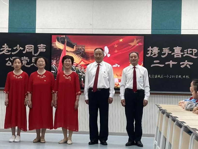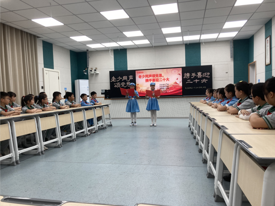 本次主题班会课形式灵活、内容丰富,有朗诵、报告、独唱、群口快板、合唱等。班会课上,同学们齐声朗诵了《请党放心、强国有我》,聆听了南湖红船的故事,并与关工委“五老”同志一起合唱《感恩》《五星红旗》《没有共产党就没有新中国》等红色歌曲,激励孩子们把满腔的爱党爱国情怀化为拳拳报国之心,献给伟大的党。通过参加主题班会课,同学们表示一定听党话、感党恩、跟党走,努力学习,用实际行动迎接党的二十大召开。