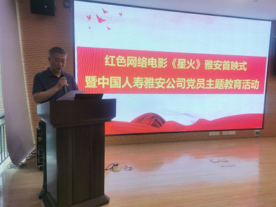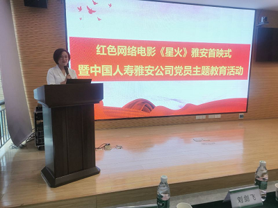 中国人寿雅安公司党委副书记、副总经理魏琳女士,向中国人寿雅安公司党员主题教育活动作动员讲话,并率公司党委成员、班子成员、部分党员代表参加党员主题教育活动,观看红色主旋律微电影《星火》,并要求公司员工,特别是党员干部赴蚂蝗岗战斗遗址等红色教育基地开展红色教育体验活动,进一步坚定全体党员的政治信念,牢固树立感党恩、听党话、跟党走的信心决心不动摇,为加快建设“川藏铁路第一城、绿色发展示范市”贡献中国人寿员工的力量。
