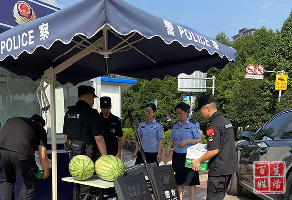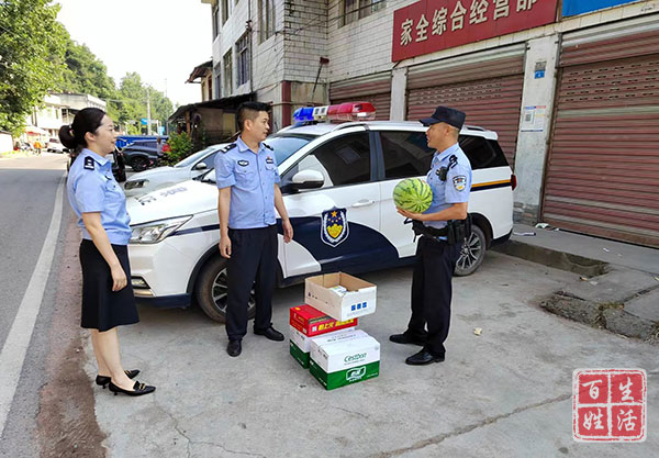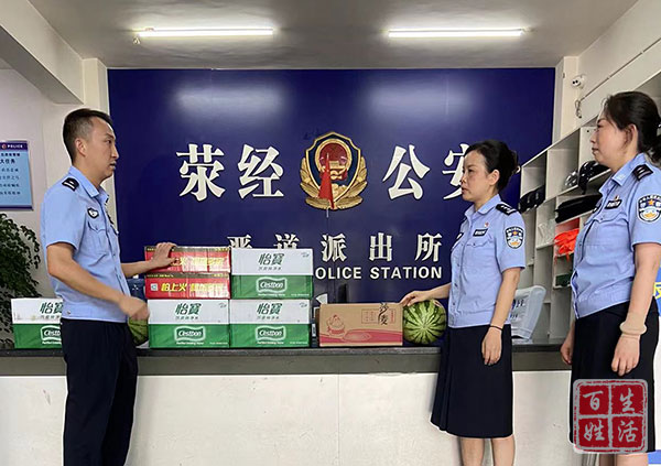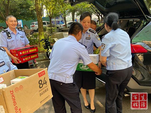 炎炎夏日,高温肆虐,连日以来,气温持续升高。为关心关爱民辅警,做好防暑降温工作,7月8日,雅安市荥经县公安局党委委员、驻局纪检组组长尹燕带领警务保障大队一行先后深入财富中心执勤点、严道派出所、交警大队等基层所队开展“夏日送清凉”,看望慰问街面执勤警力,为大家送去清凉油、藿香正气液、葡萄糖、清凉饮品、水果等防暑慰问品。