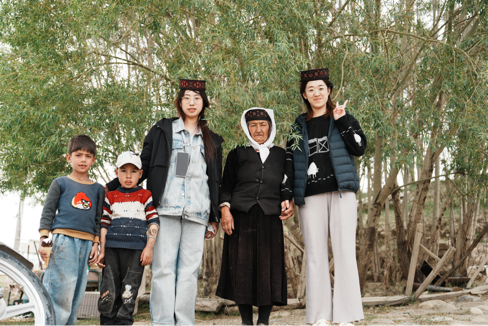 中途奶奶对大家比手势说不一起同行了,实践团以为奶奶腿脚不方便,没想到奶奶拿来了维族帽子,拉起团队成员的手,表示要和大家拍照留念。这一刻,实践团真正感受到了像石榴籽一样紧紧抱在一起的民族团结凝聚感。