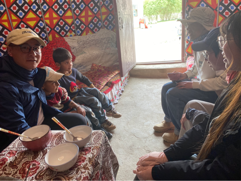 实践团的热心帮助得到了维族小男孩的信任,他们盛情邀请实践团到家里做客。秉持着浙江青年援疆精神,实践团心系盘龙古道山区原住民的真实生活状况,于是一起走进维族毡房,点亮青春微芒。