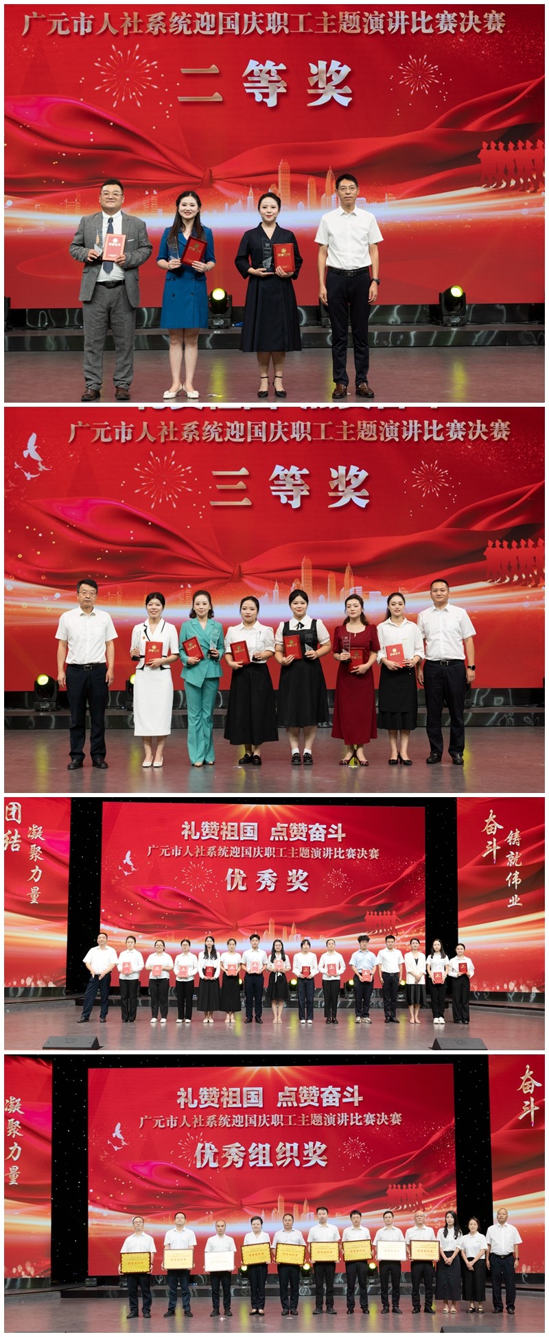 本次演讲比赛自7月启动以来,经各县区、技工院校以及市局各基层工会初赛评审、推荐,通过全市复赛产生10名选手进入决赛。比赛中,选手们紧紧围绕“礼赞祖国 点赞奋斗”这一主题,以身边的事和身边的人为例,用丰富的内容、生动的语言、真实的情感,从不同角度诠释出“五最温暖人社”的丰富精神内涵。经过紧张角逐,来自剑阁县人社局王豪获一等奖;来自剑阁县人社局袁媛,四川核工业技师学院吴树锦、李仲婷获二等奖;来自市人力资源公司陈妤、市仲裁院谢文静、旺苍县人社局杨芬、苍溪县人社局牟若楠、昭化区人社局母钰凡,市人才交流中心邓亮获三等奖。蒲娟等16名选手获得优秀奖,剑阁县人社局、四川核工业技师学院等单位获优秀组织奖。