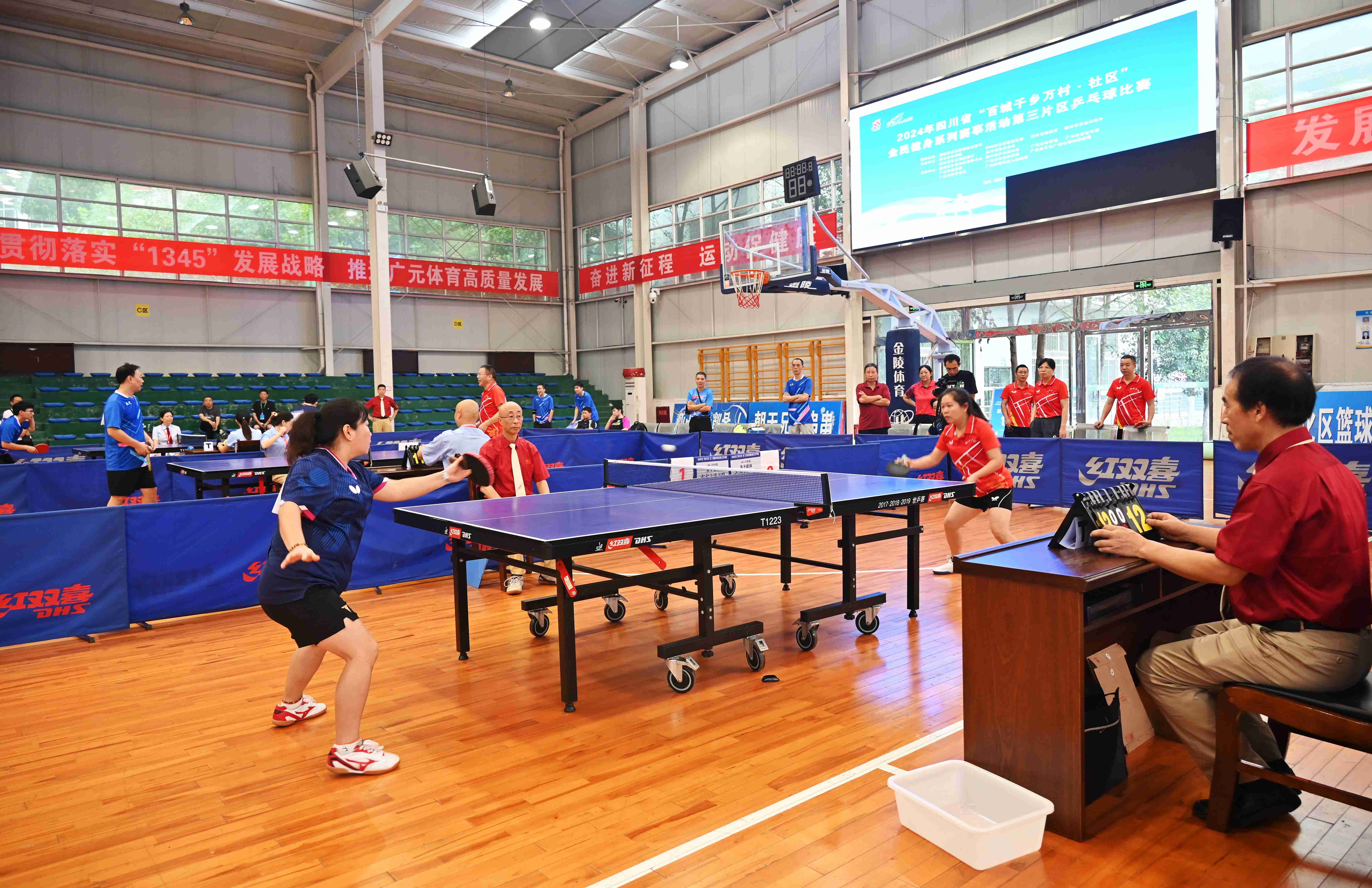 百城千乡书写基层风貌,全民健身绘就幸福生活。9月27日,2024年四川省“百城千乡万村·社区”全民健身系列赛事活动第三片区乒乓球比赛在朝天区体育竞训馆拉开帷幕,来自达州、广安、南充、巴中、广元5个川东北地区,共14支代表队在乒乓球台展开精彩角逐。