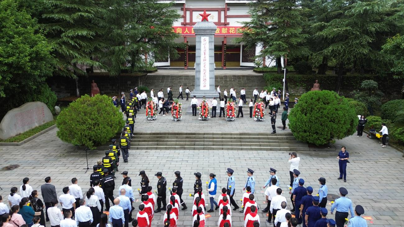 上午9时30分,在“红四方面军长征出发地英烈纪念碑”前,全体人员整齐肃立,齐声高唱中华人民共和国国歌。随后,全体人员肃立默哀,寄托对革命英烈的无限哀思。少先队员献唱了《我们是共产主义接班人》。