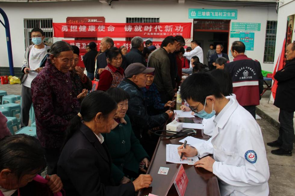 在三堆镇飞龙村,市中心医院特邀专家——杭州市第一人民医院呼吸科张维教授和广元市中心医院巡回医疗队,联合利州区第二人民医院医疗团队,开展主题为“服务百姓健康行动”的义诊活动。