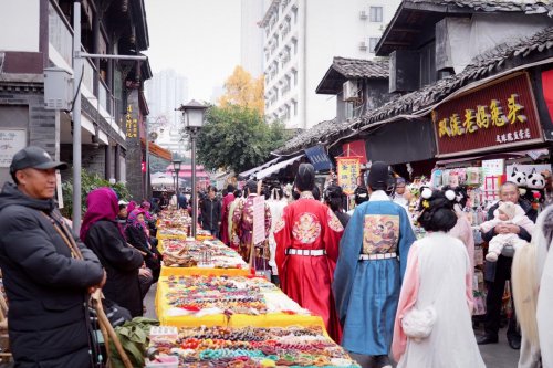 本届汉服周精准覆盖跨年与元旦假期,借力节庆经济的黄金节点,成功吸引了大量市民与游客,传统华服与现代服饰交错于古街青砖之间,构成一幅和谐包容的城市风情画。