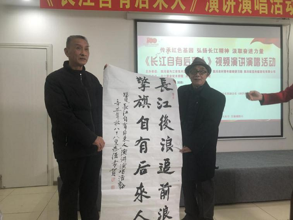他说:“1985年2月,当时我们国家已经进入改革开放新的历史时期,党和国家的工作中心已经转移到了经济建设上來。你们大胆创新,“四川农村青年新闻讲习班”应运而生。36年来,讲习班培养了大批人才。你们这个新闻讲习班面授和‘函授’从四川辐射全国各地,因此它有很强的感染力和永恒的生命力。衷心祝愿‘长江自有后来人’视频演讲演唱活动圆满成功!”