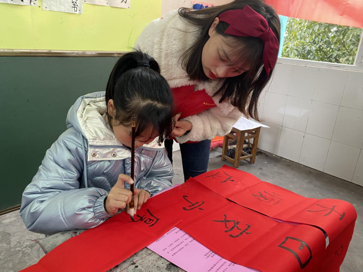 在现场,志愿者们和孩子们凝神静气,挥毫泼墨,书写一副副寓意丰富的家风家训春联,红彤彤的纸张映衬出春节前夕的喜庆氛围;最后的游戏环节更是将活动气氛推向高潮,两人三足、夹纸运球接力、接力营救,随着开始的号令“吹响,趣味游戏开始了,一声声加油声振聋发聩、响彻云霄,他们时而弯腰下蹲,时而腾空跳跃;时而孤身冲跑,时而团队协作……每个游戏都妙趣横生、精彩纷呈。