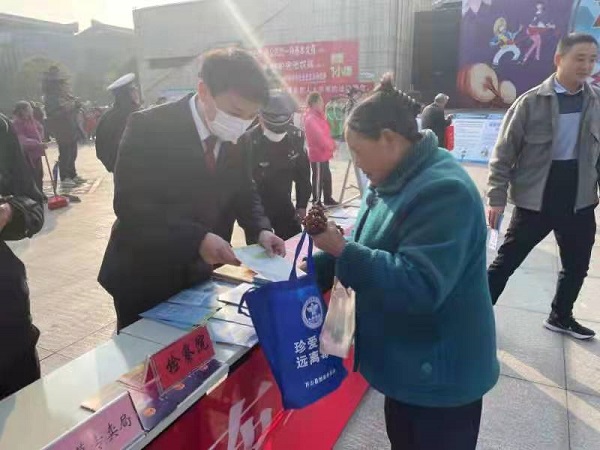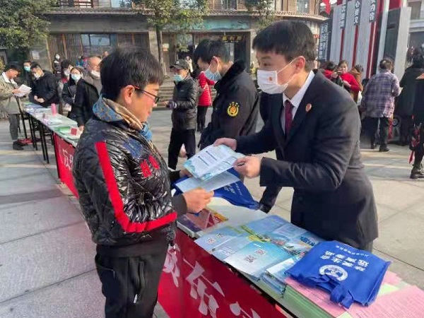 在一片和煦的冬日暖阳照耀下,雅安市芦山县2021年“宪法宣传周”启动仪式暨12.4国家宪法日集中宣传活动拉开了帷幕。芦山县人民检察院积极响应县依法治县委员会号召,早早地来到活动场地,支起了宪法宣传的检察“摊”。