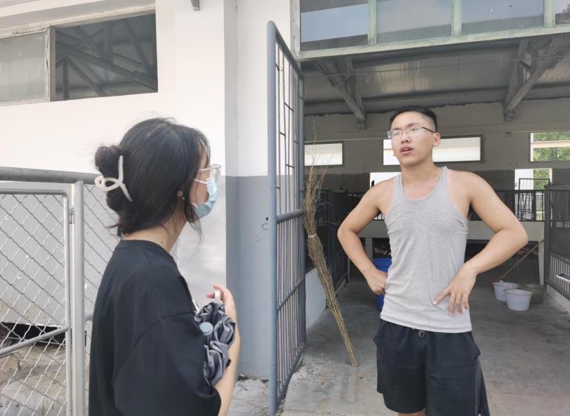“羊类养殖,我们目前的方法主要是看它毛是否柔顺,如果光顺柔滑,那它就是正常健康,如果它鼻子湿润,也代表是健康正常。”“归根结底,还是防大于治,得打疫苗。”带领团队进行畜类考查的工作人员向考查队员介绍道,其分享的养殖经验对于初次接触畜类养殖的团队成员而言既新奇,也为其完善建设大数据智慧检测系统提供了实践知识和经验。