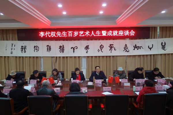 影响四川内江讯 为了表达对德艺双馨、德高望重的书法泰斗李代权先生的敬意,学习李代权先生对党对人民的热爱和忠诚、对书法艺术痴心不移的终身追求,学习和传承好李代权先生精湛的书法技艺,同时,学习李代权先生的为人之道、养生之道,12月3日上午,大千故里内江市老年书画研究会在市老干部活动中心召开“李代权先生百岁艺术人生暨成就座谈会”。