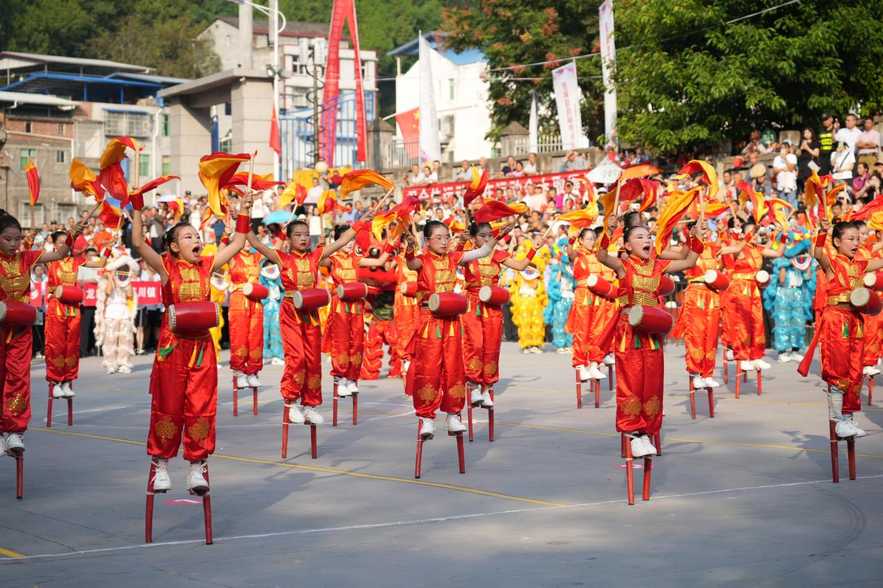 省级非遗传承人漓江高跷现场展演。赵琦摄