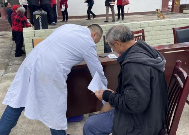 义诊现场,医务人员为前来问诊的百姓进行血压、血糖、心电、彩超、骨密度、尿蛋白等检测服务,同时热情耐心地询问村民的健康状况和病史,为村民提供疾病筛查,提出诊疗建议,指导规范用药和康复训练,并针对老年人常见疾病,如高血压、糖尿病等予以详细的解答和科普,强调合理饮食、定期体检、适量运动和规范治疗的重要性。
