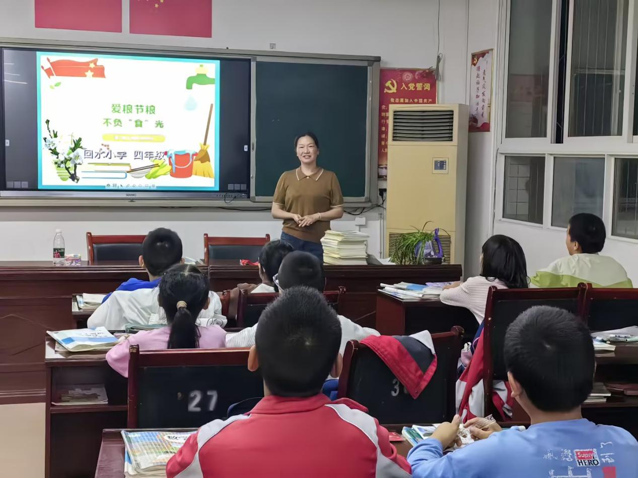 活动现场,回水小学三年级同学集体表演了《听我说》珍惜粮食的情景剧,以生动活泼的形式让同学们养成珍惜粮食、杜绝浪费的习惯。教师汪宇凌向同学们列举了校园中常见的浪费行为,呼吁全体师生要从自身做起、从现在做起,践行节约行为,共同营造浪费可耻、节约光荣的良好氛围。