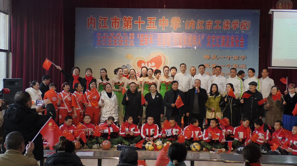 影响四川内江讯 12月21日上午,由内江市第十五中学主办,内江市关工委,市教育局关工委,内江市未保中心,市老年大学音乐提高二班志愿者参加的《迎新年送温暖,关爱未成年人》文艺汇演暨家长会在内江市第十五中学校礼堂隆重举行!