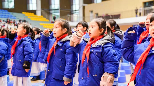 2021年12月17日,宜宾天立小学2021级一年级新生成长展示活动暨少先队入队仪式隆重开幕。孩子们以健康活泼、朝气蓬勃的精神面貌,献上精彩的演出。火红的队旗迎风飘扬,指引孩子们前进的方向;鲜艳的红领巾系满了孩子们的理想,载着他们扬帆启航,一年级的同学们举行庄重的少先队员入队仪式。经过争章考核、学习少先队知识,一批优秀的同学即将成为光荣的少先队员。庄重而有意义的入队仪式定会给每位同学心中留下无比神圣和难忘的记忆。