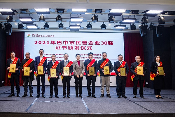为加快推进“三市两地一枢纽”建设,展示民营企业发展状况和民营经济为巴中城市发展做出的重要贡献。12月23日,2021年巴中市民营企业30强发布会在江北宾馆召开。会上,发布了2021年巴中市民营企业30强调研分析报告,并为民营企业30强颁发证书。