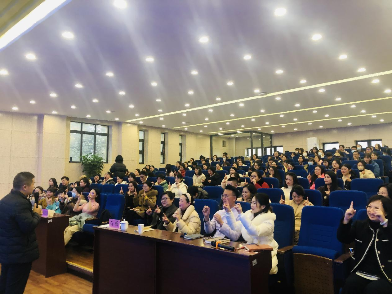 在石室天府中学附属小学特邀成都市心理健康中心心理测评中心主任何江军为全校160名教职工开展了“为心赋能·聚力前行”的主题讲座。何主任围绕优化自我心理健康素养这一主题,通过有趣的游戏互动和生动的案例分享教授了老师们如何有效识别心理疾病,提升内在心理效能及放松减压技巧。