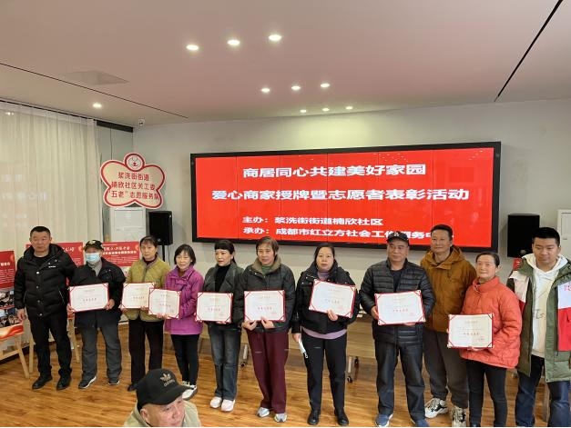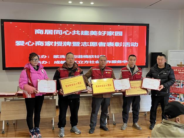 随着活动的深入,社区领导为爱心商家和居民志愿者颁发了奖牌和证书。每一块奖牌,每一张证书,都承载着社区对他们一年来积极参与和践行志愿者精神的感激与敬意。这些荣誉,是对他们无私奉献的最好见证,也是对他们未来继续投身社区建设的鼓舞与期待。