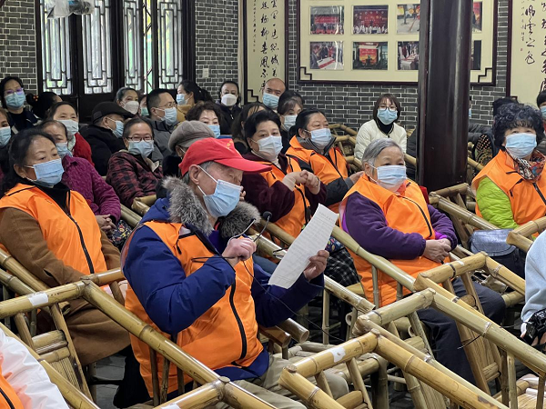 锦官驿街道大慈寺社区党委书记、居委会主任凌蔓带领全体人员共同观看了大慈寺社区志愿者在此轮疫情防控工作中的照片剪影,共同回顾了紧张忙碌但又包含温情的14天。她随后表示,“在这场无声的疫情防控阻击战中,来自各行各业、身份年龄各异的志愿者,投身疫情防控一线工作,默默挺身而出。他们主动承担物资转运、后勤保障、信息宣传、联络沟通、秩序维护等多项工作,为防疫筑起坚实高墙,为这座城市守护万家灯火。”